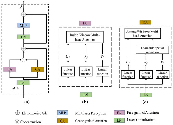 - Fine-grained + coarse-grained attention (FC transformer): This configuration evaluates the combination of fine-grained and coarse-grained attention mechanisms without the incorporation of feature fusion.