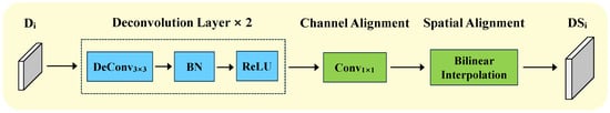 where represents the 1 × 1 convolution layer, and is the output of HDSM with a size of , obtained through bilinear interpolation.