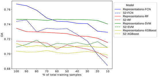 In this work, we propose training a light-weight deep learning model with individual time-tagged spectral signatures while bypassing gap-filling and compositing methods. In our framework, we use an ensemble of AEs to generate new informative and discriminative features. The features are evaluated in this work with respect to crop type classification. Here, we arbitrarily choose one simple AE per class, but other choices would also be possible. We calculate the AEs’ reconstruction difference vectors between the input and output and concatenate them to form a vector of representations. We evaluate the performance of the derived representations by comparing classification performance using as input data Sentinel-2 time series and the representations generated by our method on conventional classifiers, RF, SVM, XGBoost and a simple fully connected network (FCN). In addition, we compare the outcomes against a number of more complex benchmark approaches using the same dataset.