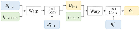 where is the location of the pixel, is the fused feature map, and I is a convolution layer. To fuse the features in long-term sequences, we repeat the above fusion steps from frame and propagate the features forward to the current frame in turn. Finally, we obtain feature map O from the fusion module.