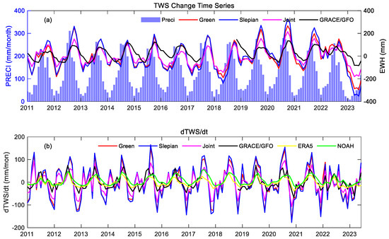 - Li, X.P.; Zhong, B.; Li, J.C.; Liu, R.L. Joint inversion of GNSS and GRACE/GFO data for terrestrial water storage changes in the Yangtze River Basin. Geophys. J. Int. 2023, 233, 1596–1616. [Google Scholar] [CrossRef]