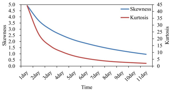 The variation curves of kurtosis coefficient and skewness coefficient for days 1–11.