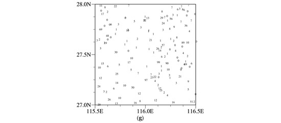 - After obtaining the reconstructed field and the residual field, calculate the standard deviation of for all stations at the same time each day, compare for each time with the corresponding , and define outliers within the subregion when .