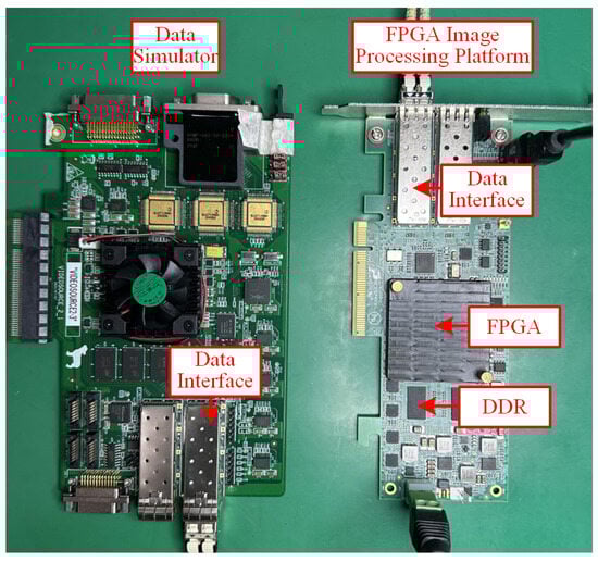 With the continuous development of space satellite technology, remote sensing video satellites have achieved multi-object tracking (MOT) of moving vehicles on the ground. The MOT of moving vehicles has a wide range of applications in fields such as security monitoring [1], motion analysis [2], and traffic control [3]. Furthermore, due to the large amount of data in satellite videos and the high latency of transmission to the ground, real-time, on-satellite processing is of great practical significance [4,5,6]. With regard to devices for implementing on-satellite algorithms, commercial, off-the-shelf (COTS) Graphics Processing Units (GPUs) or Central Processing Units (CPUs) are difficult to use due to issues related to power consumption, spatial radiation, and extreme temperatures [7,8]. Application-Specific Integrated Circuit (ASIC) processing chips are expensive due to their single-function nature and are not suitable for algorithm deployment or adaptation to different scenarios [9], while Field-Programmable Gate Arrays (FPGAs) are highly versatile and portable and may be used in on-satellite applications [10].