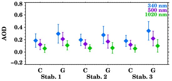 The annual evolution of aerosol optical depth (AOD) retrieved by the AERONET sun photometer is presented in Figure 10 together with the normalized frequency distribution of giant aerosol cases. The AOD curves and the distribution of the giant aerosol observations yield a good agreement: the highest AOD values are observed during the months in which more giant aerosol cases occur. The enhanced AOD values during spring and summer agree with the annual cycle of dust outbreaks [25,63], suggesting the presence of coarse-mode aerosols over Potenza.