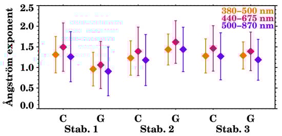 Measurements from three additional ground-based remote sensing instruments, a microwave radiometer profiler (MWR), a ceilometer, and a sun photometer are used. The MWR (MP3014 from Radiometrics) measures the sky brightness temperature (BT) at 12 frequencies; the inversion of this quantity provides temperature, humidity, and cloud liquid water profiles up to 10 km as well as an estimation of the integrated water vapor (IWV) and the cloud liquid water path (LWP) [24]. The ceilometer (CT25K from VAISALA) is continuously measuring the cloud base height and the signal backscattered by atmospheric particles at 905 nm up to km [24]. The sun photometer (CE-318 from CIMEL) measures the direct solar irradiance and sky radiance at Earth’s surface. It is operational within the AERosol RObotic NETwork (AERONET), performs columnar measurements, and one of its main products is the multi-wavelength aerosol optical depth (AOD), which can be used to estimate the aerosol size distribution [24].