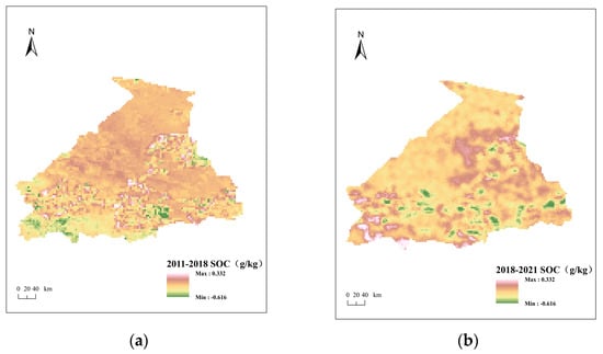 The Sixth Assessment Report of the Intergovernmental Panel on Climate Change (IPCC, 2023) indicates that the global climate is experiencing unprecedented changes. The global carbon cycle, which is the linkage among the various spheres of the Earth, is crucial for studying climate change [1,2]. As the largest carbon reservoir in terrestrial ecosystems, soil organic carbon (SOC) is a crucial component for investigating carbon cycling and global climate change [2,3]. SOC is a fundamental indicator of soil quality and a key constituent of the soil carbon pool [4]. The spatial–temporal distribution of SOC plays a crucial role in the management of carbon and climate change, which can not only contribute to determining the SOC stock but also benefit inputs to earth system models and sustainable soil management [1,5,6,7].