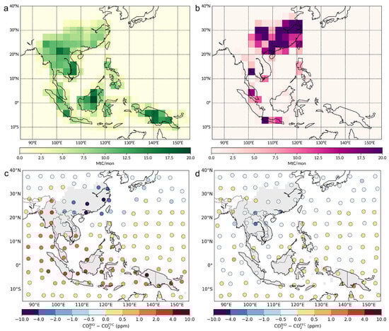 - Saeki, T.; Patra, P.K. Implications of overestimated anthropogenic CO2 emissions on East Asian and global land CO2 flux inversion. Geosci. Lett. 2017, 4, 9. [Google Scholar] [CrossRef]