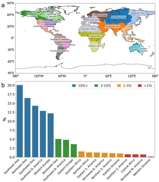 - Choulga, M.; Janssens-Maenhout, G.; Super, I.; Solazzo, E.; Agusti-Panareda, A.; Balsamo, G.; Bousserez, N.; Crippa, M.; Denier van der Gon, H.; Engelen, R.; et al. Global anthropogenic CO2 emissions and uncertainties as a prior for Earth system modelling and data assimilation. Earth Syst. Sci. Data 2021, 13, 5311–5335. [Google Scholar] [CrossRef]