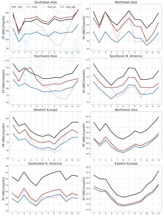 - Oda, T.; Feng, L.; Palmer, P.I.; Baker, D.F.; Ott, L.E. Assumptions about prior fossil fuel inventories impact our ability to estimate posterior net CO2 fluxes that are needed for verifying national inventories. Environ. Res. Lett. 2023, 18, 124030. [Google Scholar] [CrossRef]