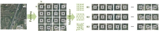 Illustration of the proposed multi-router scanning block (MRSB). Compared to previous multi-directional scanning methods based on fixed routing, our method performs sequential scanning of image patches in ‘Z’-shaped, ‘S’-shaped, and ‘W’-shaped patterns. This combination enables the extraction of large spatial features from various perspectives in RS images.