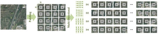- Effectiveness of the MRSB. The essence of our methodology lies in the principal design of the MRSB, which adeptly models global information. To elucidate the efficacy of the MRSB, we commence by contrasting it with the prevalent multi-directional scanning technique, as detailed in reference [] (refer to Figure 8). Table 4 presents the performance outcomes of models (a–c), which employ uni-directional, bi-directional, and four-directional scanning methods along a defined Z-shaped trajectory, respectively. Furthermore, we elucidate the results of employing diverse routing configurations within the MRSB, as depicted in models (d–f) of Table 4. It is noteworthy that, in the context of remote sensing (RS) image restoration, the performance enhancement achieved by model (c) with an increased number of scanning directions, as compared to model (b), is relatively modest. This may be attributed to the inherent issue of information redundancy associated with the multi-directional scanning paradigm. In stark contrast, our MRSB markedly augments performance by leveraging a variety of routing shapes, thereby demonstrating a superior capability to effectively exploit salient information for global feature modeling throughout the scanning procedure.