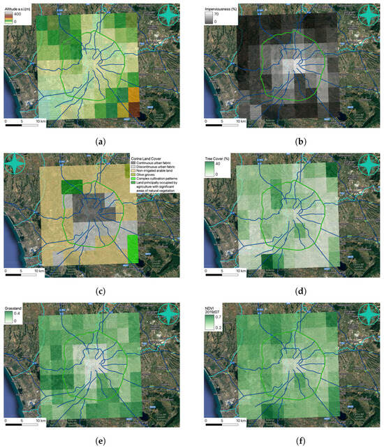 - Imperviousness Density: density of impervious surfaces. It represents the percentage of an area covered by artificially sealed surfaces, such as roads or buildings. It ranges from 0% to 100%, with a resolution of 1%, and is provided with a spatial resolution of 10 m. The year of measurement is 2018.