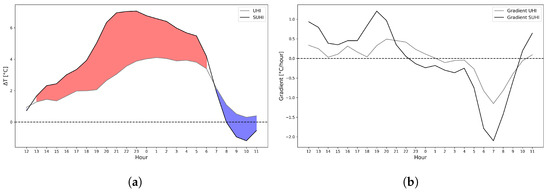 3.4. UHI and SUHI Intensity