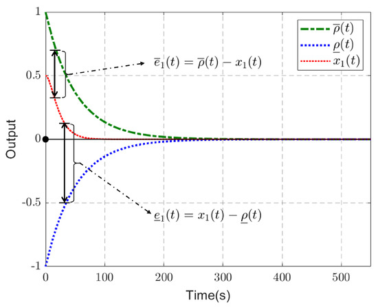 The objective of this section is to mitigate the disturbances in system (12) and ensure that operates within a predefined interval . The design concept for the interval theory is derived from [31], as shown in Figure 3.
