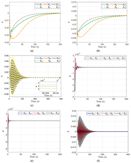 Theorem 1 proves that, in the presence of unknown disturbances, the system states in Equation (12) can be sufficiently constrained by the performance function . The performance function does not need to adhere to a specific form; its structure can be flexibly adjusted based on the system’s performance requirements to accommodate various stability demands, thereby laying the foundation for the formation of the AD-PPC unified framework. By designing the virtual term in the disturbance observer, it is ensured that the introduced disturbance observer operates independently of the performance function. Its ability to estimate and compensate for unknown disturbances remains unaffected by changes in the performance function . This allows the disturbance observer to seamlessly integrate into the PPC stability framework and adapt to various stability performance requirements, thereby ensuring that the system’s robustness is consistently maintained under the AD-PPC approach. Therefore, we can assert that the proposed AD-PPC scheme achieves a unified approach to disturbance rejection and diverse performance requirements.