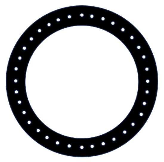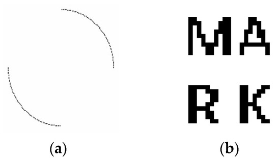 The watermark information comprises a binary sequence of “0”s and “1”s, referred to as a , with its length indicated as . The watermark is expressed as , The ring template watermark is formulated utilizing the magnitude coefficients within the DFT domain [23]. Figure 3 illustrates the schematic representation of the template watermark, wherein the black sections denote the watermark information bit “0” and the white highlights signify the watermark information bit “1”.