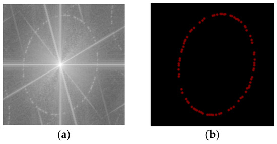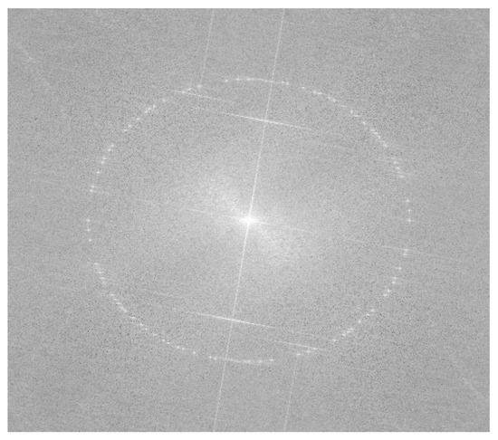 Figure 4 illustrates the spectral image of the ring template post-watermark embedding, where the highlighted circle denotes the watermark information bit “1”, and the non-highlighted portion of the circle signifies the watermark information bit “0”.
