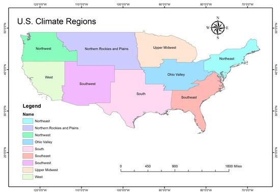 Map of the nine climate regions of the Continental United States (CONUS) as classified by the National Centers for Environmental Information (NCEI).