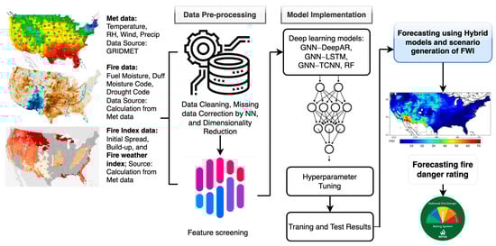 Workflow for forecasting the FWI using hybrid deep learning models.