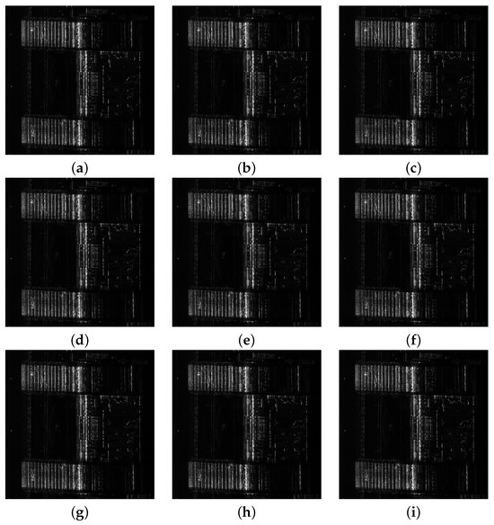 The 2D images after down-sampling eight times are displayed in Figure 11, revealing a high level of similarity among the eight samples of the scene. Compared with the image without down-sampling in Figure 11a, there is no decrease in resolution.