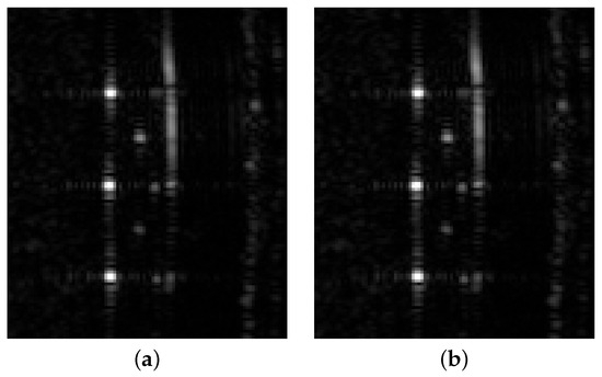 It is obvious that for the four continuous vertical lines scattered by the billboard on the left side of the image, the inversion results of the proposed algorithm are more complete and continuous, while the results of the BOMP algorithm are greatly affected by the floor scattering overlap mask. Numerically, we calculated the completeness of the four straight lines. According to Table 2, our proposed method achieved higher resolution with all the four lines.