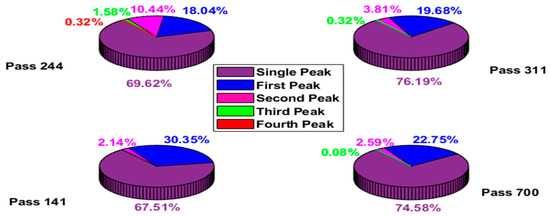 The numerical results of the percentage analysis for multi-peak waveforms and optimal peaks for each of the study areas are presented in Table 4, and its circular graph is depicted in Figure 9.