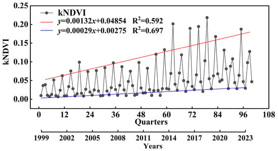 kNDVI seasonal changes in the Huojitu mining area from 1999 to 2023.