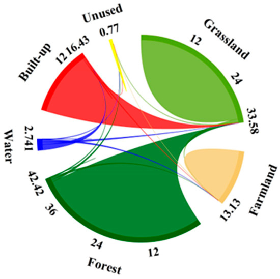 In order to master the evolution process of various land use types, this study adopts a graph fusion method based on GIS [51]. According to Equation (13):