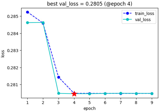 Figure 5. During the training process, both the training and validation losses gradually decreased with an increasing number of iterations until they stabilized and ceased to change. Subsequently, the training model corresponding to the iteration with the best-fitting performance (i.e., epoch = 4, marked with a red star in the figure) was selected as the final model for further analysis.