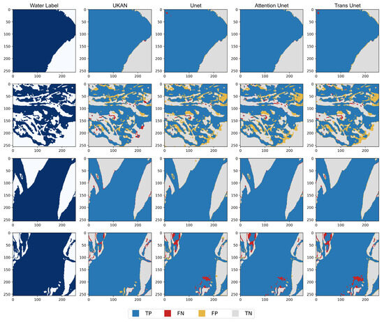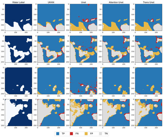 The outstanding performance of the UKAN model has important practical significance for flood disaster monitoring and emergency response. Higher extraction accuracy and reliability mean that information on flood inundation extents can be obtained more accurately and promptly, providing solid data support for disaster prevention, mitigation, and resource allocation. Especially in sudden flood disasters, efficient and accurate flood extent extraction helps increase early warning capabilities, support decision-making, and reduce casualties and property losses.