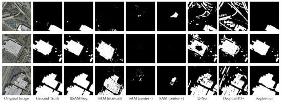 The code used in this study is openly available at https://chief-byte.github.io/RSAM-Seg-Site (accessed on 1 January 2025). Further inquiries can be directed to the corresponding author. Inria [70] is available at https://project.inria.fr/aerialimagelabeling/ (accessed on 1 January 2025). 38-Cloud [71] is available at https://github.com/SorourMo/38-Cloud-A-Cloud-Segmentation-Dataset (accessed on 1 January 2025). Sentinel-2 [73] is available at https://sustainlab-group.github.io/sustainbench/docs/datasets/sdg2/field_delineation.html (accessed on 1 January 2025). DeepGlobe [72] is available at https://www.kaggle.com/datasets/balraj98/deepglobe-road-extraction-dataset (accessed on 1 January 2025).