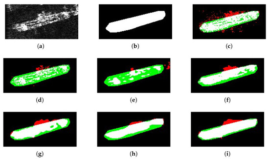 In order to perform target segmentation of images, many traditional methods have been proposed. The traditional target segmentation mainly involves threshold-based [10,11,12,13], region-based [14,15,16], wavelet-based [17], and cluster-based methods [18]. These methods have achieved good performance on simple images, but they basically rely on handcrafted features and fixed hyperparameters. However, SAR backscatter is affected by the speckle noise and the imaging geometry, making targets in SAR images normally present heterogeneous backscatter intensity with incompleteness and discontinuity shapes. These methods usually result in inaccurate segmentation results.