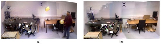 - Palazzolo, E.; Behley, J.; Lottes, P.; Giguère, P.; Stachniss, C. Refusion: 3D reconstruction in dynamic environments for rgb-d cameras exploiting residuals. In Proceedings of the 2019 IEEE/RSJ International Conference on Intelligent Robots and Systems (IROS), Macau, China, 3–8 November 2019; pp. 7855–7862. [Google Scholar]