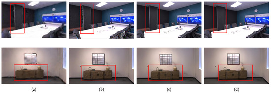 Detailed comparison of the original reconstructed scene provided by Bonn and the scene reconstructed by our method. The red boxes indicate the details of the different methods to reconstruct the scene. (a) Original reconstructed scene provided by Bonn. (b–d) Details of the reconstructed scene of our method.