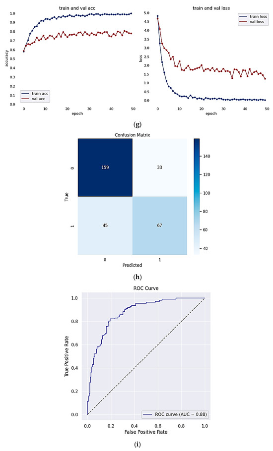 Classification performances of EfficientNetV2 for the landslide area or not in cases of using RVI, VH polarization, and VV polarization data used. (a) Case (1): RVI; (b) Case (1): RVI; (c) Case (1): RVI; (d) Case (2): VH polarization only; (e) Case (2): VH polarization only; (f) Case (2): VH polarization only; (g) Case (3): VV polarization only; (h) Case (3): VV polarization only; (i) Case (3): VV polarization only.