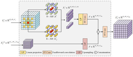 To improve computational efficiency, we input into the linear projection layer to obtain a compact intermediate layer feature . Finally, the feedforward convolutional layer is used to obtain deep structural features .