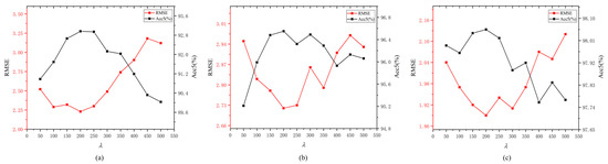 (3) Effectiveness of weight parameter in . The parameter in keypoint detection loss is mainly used to balance the contributions of positive and negative samples. A larger increases the sensitivity of the model to positive samples. Based on experience, we set the value range of to [50, 500] and take values with a step size of 50. The experimental results with different values of are shown in Figure 13. The change in the value of weight parameter in the three datasets resulted in the same trend of change in the experimental results. According to the experimental results, it can be found that when the value is set to 200, it can better constrain the model’s detection of key points. When the value of is set too large, there may be a risk of overfitting.