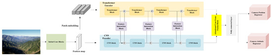 - Deep Regression-Based Methods: These methods utilize Convolutional Neural Networks (CNNs) to learn a mapping between input images and their corresponding poses. Early work such as PoseNet [27] regressed camera poses from a single image by adding a multi-layer perceptron (MLP) head to a GoogLeNet backbone. Subsequent methods, like PoseGAN [28], improved on this by incorporating geometric structures to enhance pose estimation. MS-Trans [29] introduced transformers with a complete encoder–decoder structure to regress camera poses across multiple scenes. TransBoNet [29] employed a transformer bottleneck to estimate the absolute camera pose. MapNet [30] incorporated relative geometric constraints to improve pose estimation, though this differs from our approach in several key aspects. ALNet [31] utilized a local discrepancy perception module and an adaptive channel attention module to refine pose estimation. Yoli Shavit [32] employed a transformer encoder for camera pose regression, while MambaLoc [32] introduced a selective state-space model for visual localization.