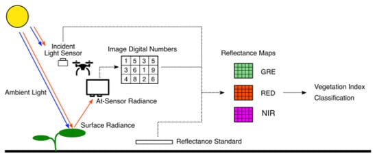 An illustration by Assman et al. [36] depicting the reflectance maps obtained by a multispectral camera on vegetation.