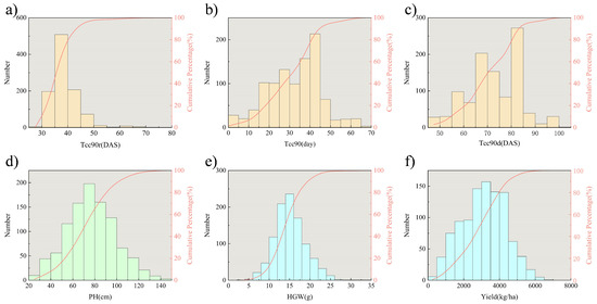 Based on the proposed approach, 1923 soybean varieties from 2022 were tested with the following phenotypic parameters (Table 1). To validate the method’s applicability, 2023 data with the same phenotypic parameters (Table 1) were used (Figure 9). Since the data only represents conditions without artificial support interference, and the parameters were not redefined as percentages, the performance parameter settings from 2022 were retained.