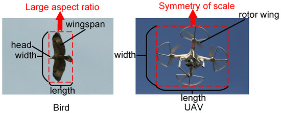 With the growing use of civilian drones, their applications in daily life are rapidly expanding. Publicly available datasets offer diverse drone images captured under various environmental conditions. However, many datasets are constrained by simple backgrounds and lack sufficient information on different drone postures in complex scenarios, which can hinder model accuracy in drone detection. To bridge this gap, this study enhances existing datasets by manually screening drones under various contexts from publicly available online datasets. To improve the model’s ability to accurately recognize drones and prevent misclassification of common birds as drones, the dataset used in this study is divided into two categories: birds and drones. In the detection airspace, drones and birds exhibit distinct visual features. As shown in Figure 7, drones generally have clear geometric shapes, such as rectangular, square, or circular bodies, along with quadcopter structures. These features result in outlines that display strong symmetry and regularity in images. In contrast, birds have more complex and irregular shapes, with varied wing and head contours, a broad wingspan, and dynamic morphological changes during flight.