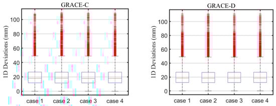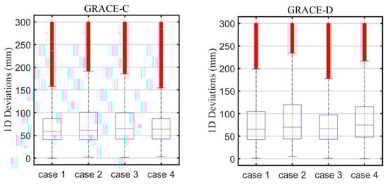 The 1D deviations in the orbital errors of GRACE satellites in integrated POD based on regional network for different LEO attitude quaternion situations.