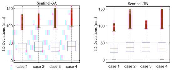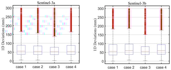 The 1D deviations in the orbital errors of Sentinel-3 satellites in integrated POD based on regional network for different LEO attitude quaternion situations.