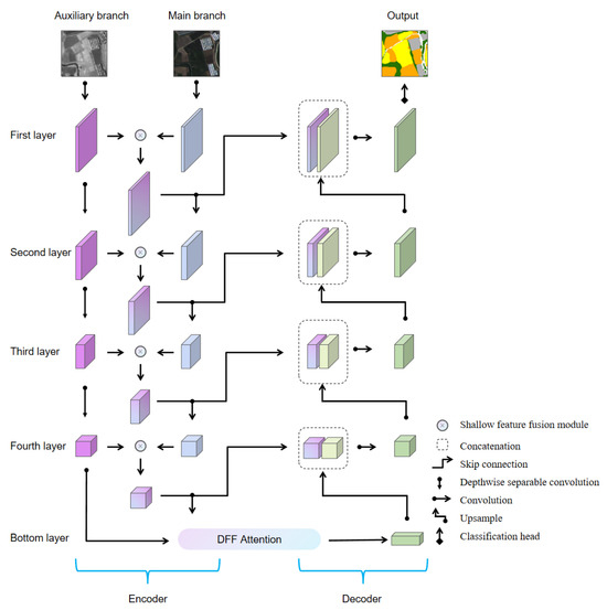 - Liu, W.; Cui, N.; Guo, L.; Du, S.; Wang, W. DESformer: A Dual-Branch Encoding Strategy for Semantic Segmentation of Very-High-Resolution Remote Sensing Images Based on Feature Interaction and Multiscale Context Fusion. IEEE Trans. Geosci. Remote Sens. 2024, 62, 3000820. [Google Scholar] [CrossRef]