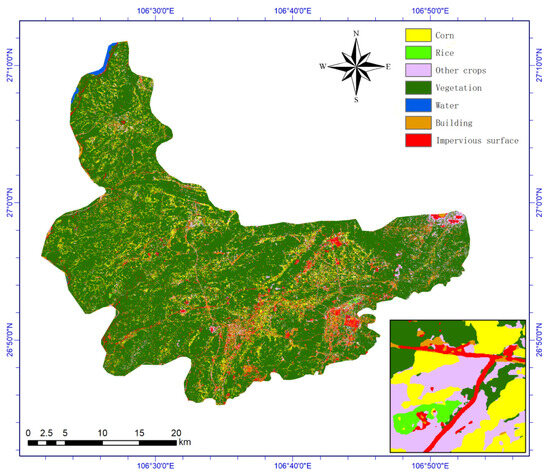 - Tian, X.; Chen, Z.; Li, Y.; Bai, Y. Crop Classification in Mountainous Areas Using Object-Oriented Methods and Multi-Source Data: A Case Study of Xishui County, China. Agronomy 2023, 13, 3037. [Google Scholar] [CrossRef]