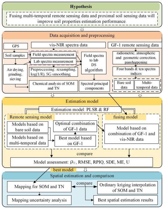 Xu, D.; Chen, S.; Zhou, Y.; Ji, W.; Shi, Z. Spatial Estimation of Soil Organic Matter and Total Nitrogen by Fusing Field Vis–NIR Spectroscopy and Multispectral Remote Sensing Data. Remote Sens. 2025, 17, 729. https://doi.org/10.3390/rs17040729