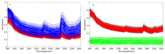 - Xu, D.; Ma, W.; Chen, S.; Jiang, Q.; He, K.; Shi, Z. Assessment of important soil properties related to Chinese Soil Taxonomy based on vis–NIR reflectance spectroscopy. Comput. Electron. Agric. 2018, 144, 1–8. [Google Scholar] [CrossRef]