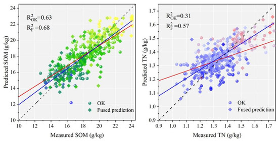 Spatial Estimation of Soil Organic Matter and Total Nitrogen by Fusing Field Vis–NIR Spectroscopy and Multispectral Remote Sensing Data