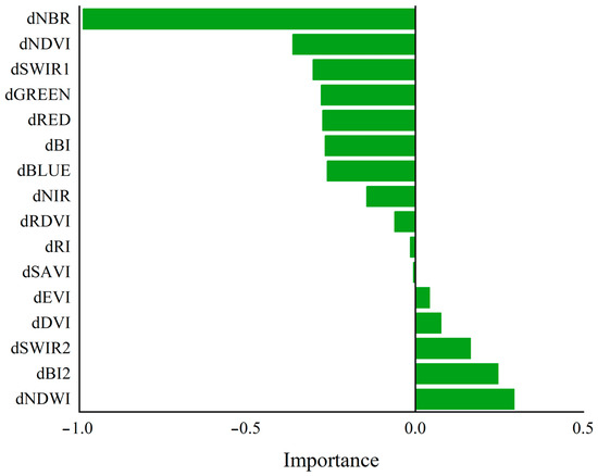 Our analysis indicates that the two most critical features in the S2+L8+MOD dataset are dNBR and dNDVI (Figure 3).